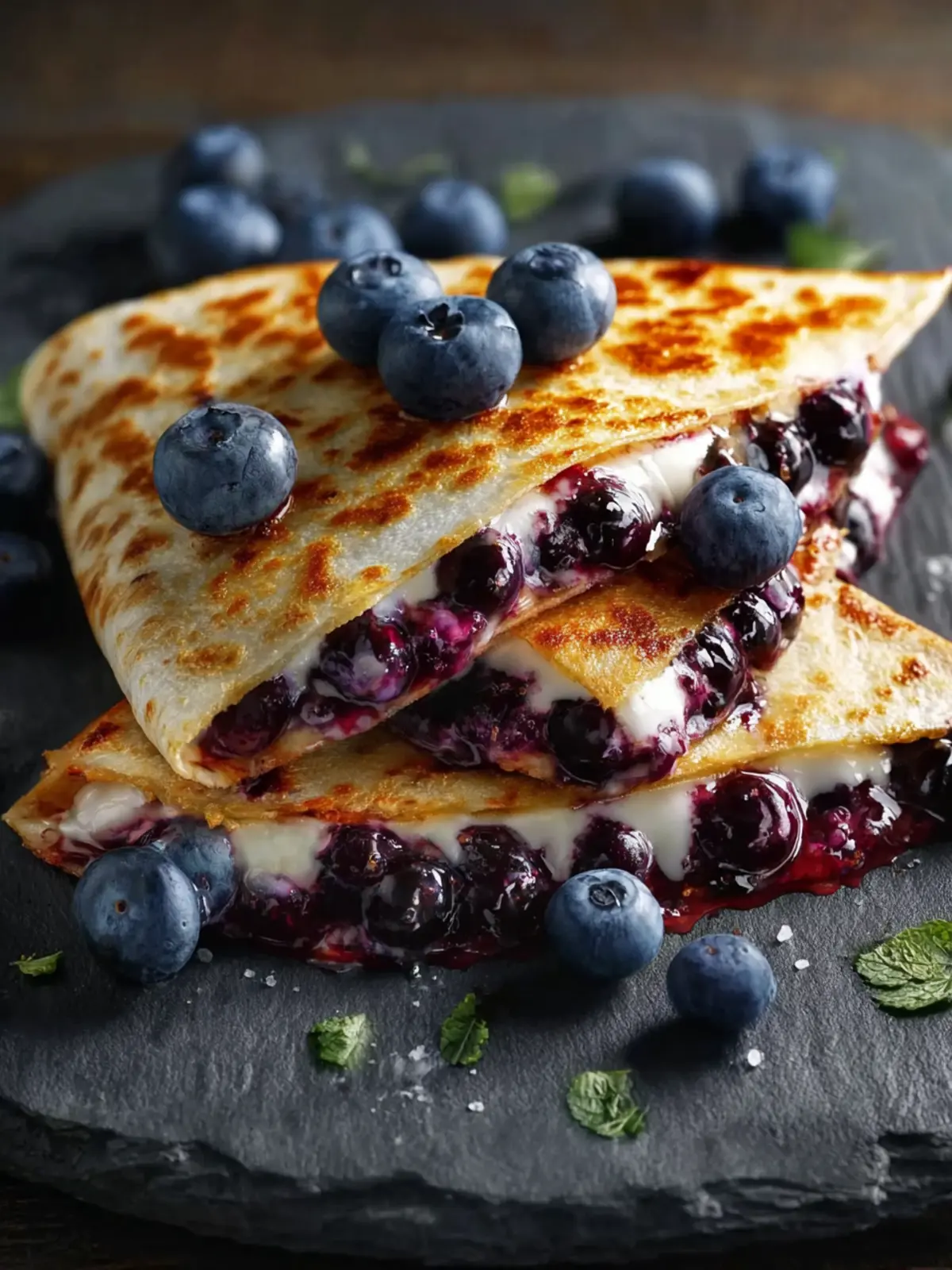 Consider garnishing your quesadilla with some fresh mint or basil leaves. The aromatic notes of these herbs will beautifully complement the sweetness of the blueberries, adding a refreshing twist to each bite.