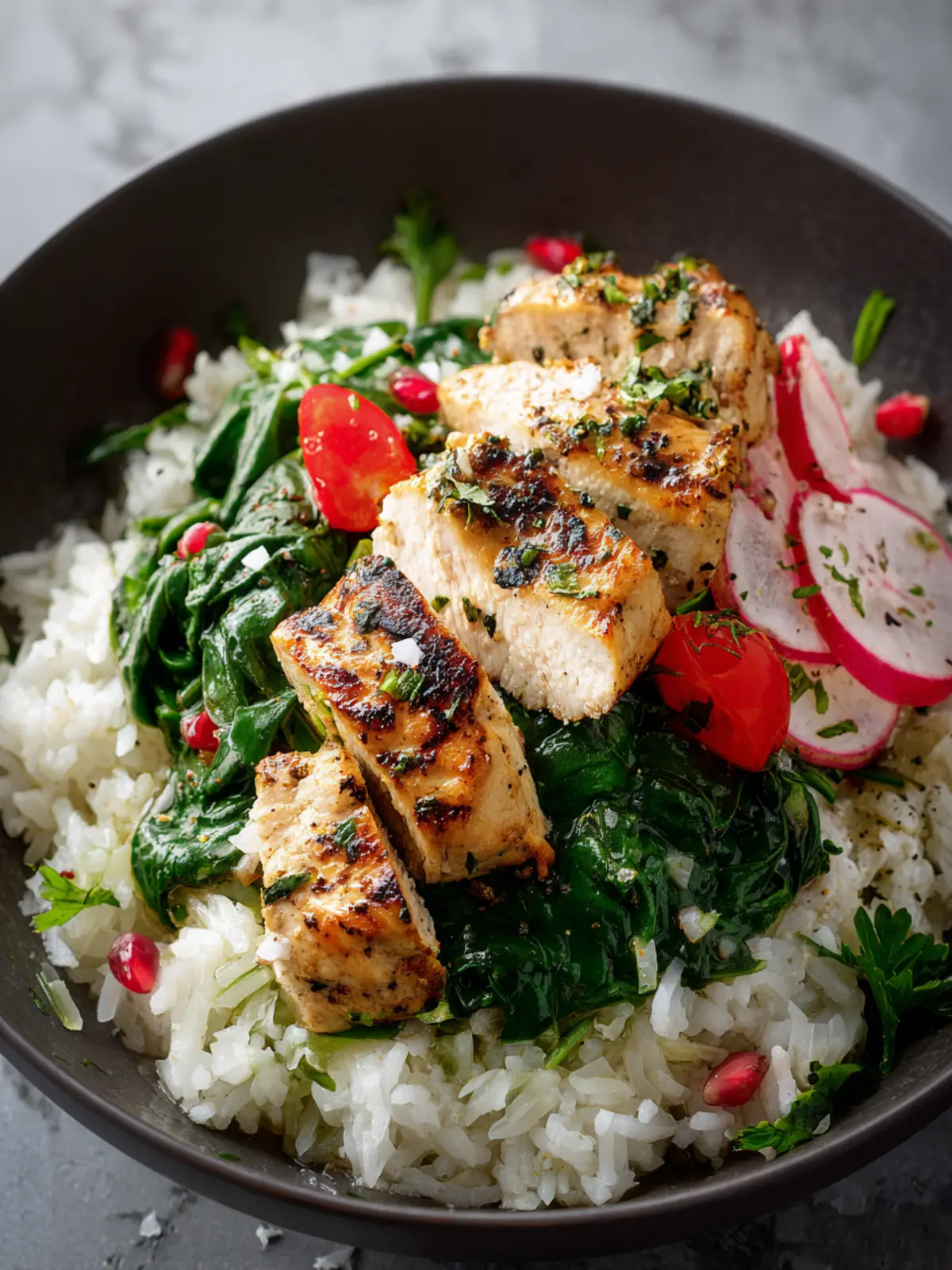 Quick and Easy Preparation: The chicken spinach rice bowl can be ready in under 30 minutes. Simply marinate the chicken, sauté the spinach, and cook your favorite rice. This rapid process makes it an ideal option for those working full-time who still want to enjoy a homemade meal.