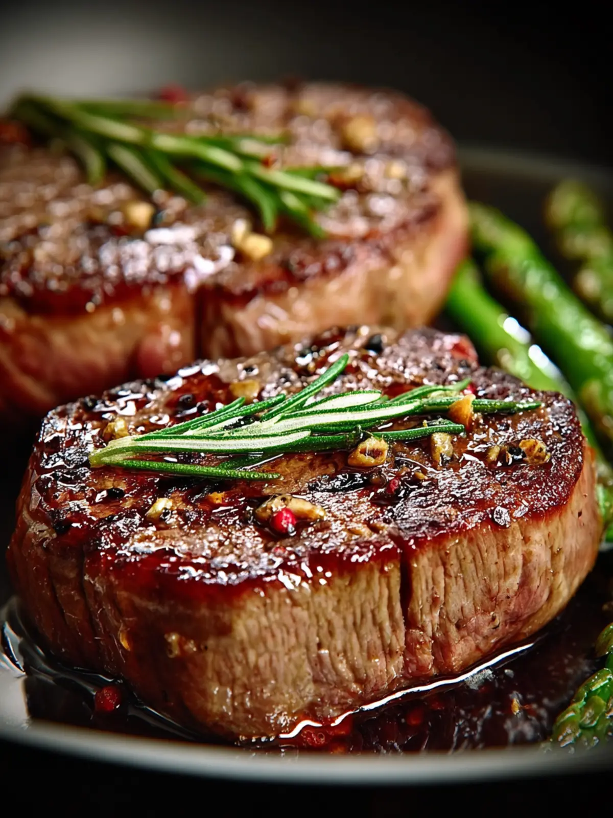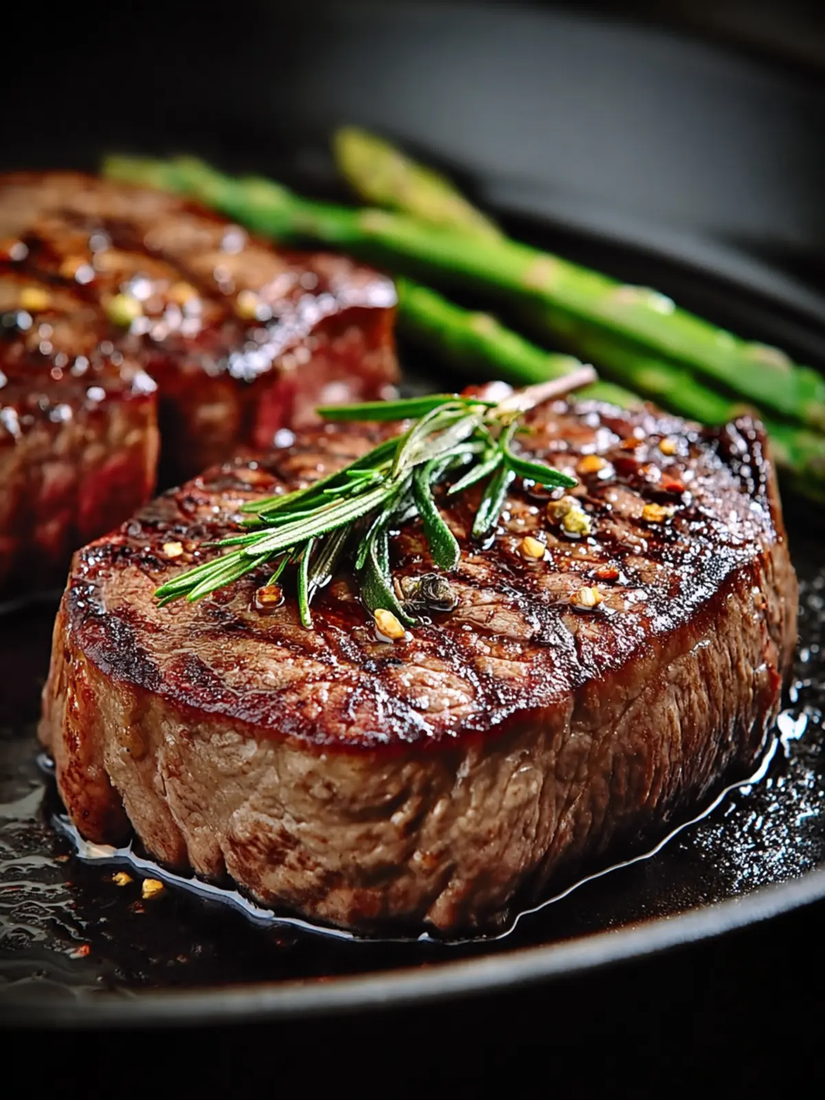 Indulge in a perfectly cooked ribeye steak, seasoned to perfection and seared to a juicy medium-rare. Add fresh herbs for an aromatic touch!