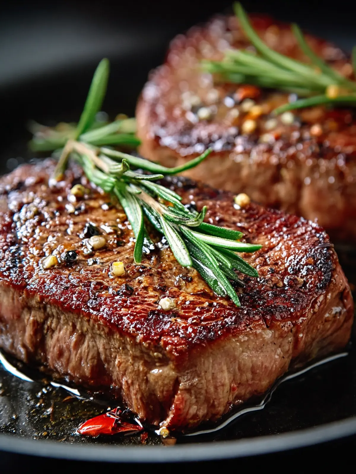 Herbs and Garlic: Fresh herbs like thyme or rosemary and a few smashed garlic cloves elevate your dish, providing aromatic notes that complement the savory steak.
