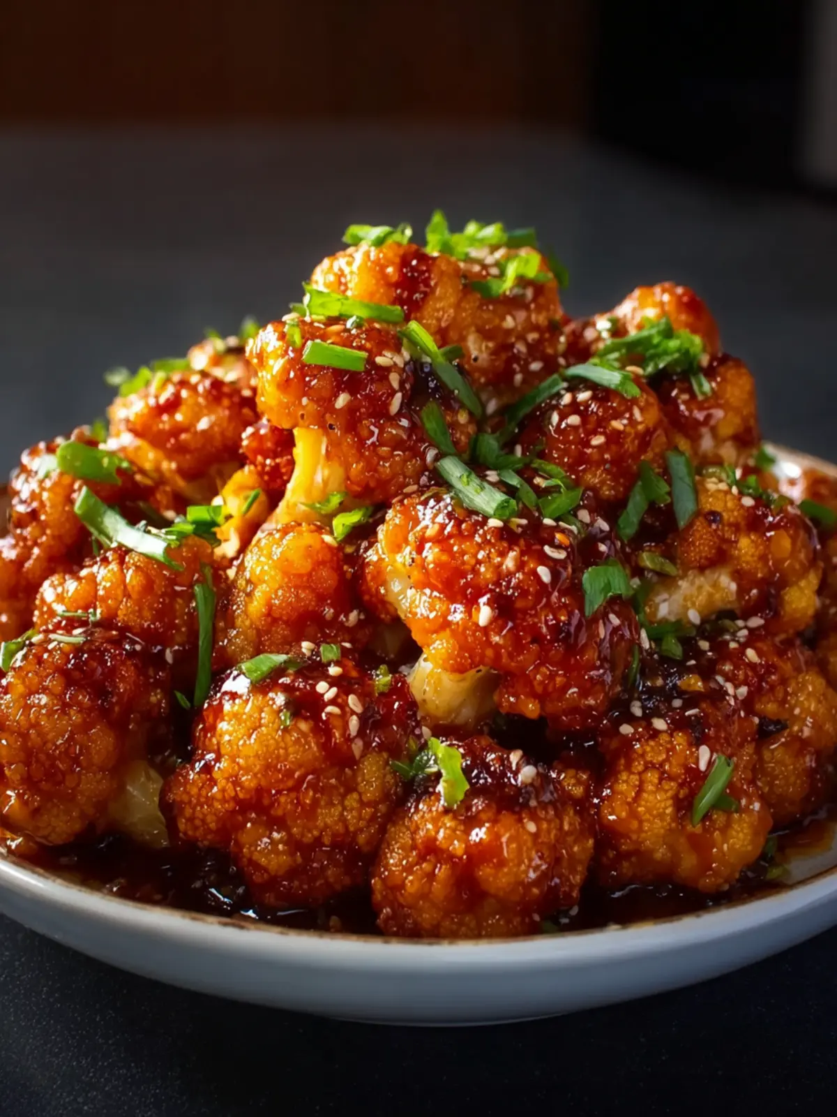 A delicious honey garlic sauce coated on crispy baked cauliflower, perfect as a side dish or snack.