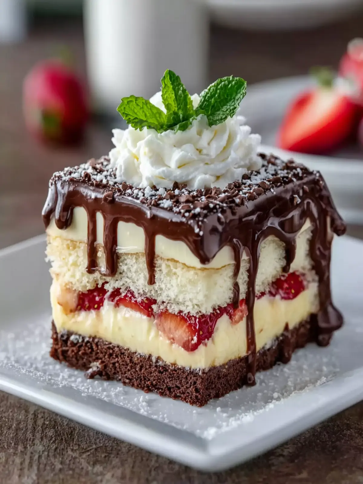 - Chocolate Variants: Swap the vanilla cake layers for chocolate sponge to create a rich, chocolaty version that intensifies the cake’s decadence.